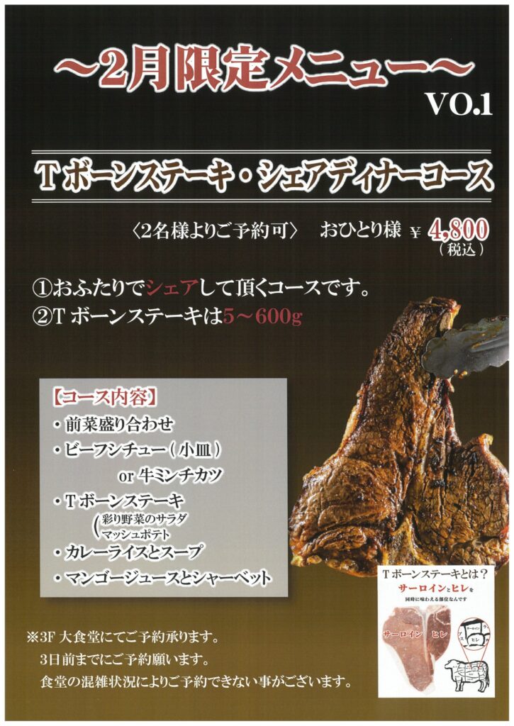 食べ応えのあるTボーンステーキを2月限定で提供させて頂きます。